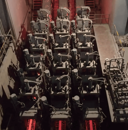 采用全保護(hù)、穩(wěn)拉速澆注,并配備結(jié)晶器自動(dòng)液面控制系統(tǒng)、電磁攪拌系統(tǒng)、自動(dòng)配水系統(tǒng)、大包下渣檢測系統(tǒng)、熱坯溫度檢測系統(tǒng)、自動(dòng)切割系統(tǒng)及翻鋼冷床,能確保連鑄鋼坯的外形尺寸、表面質(zhì)量及內(nèi)部質(zhì)量得到有效控制并滿足要求。